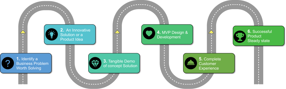 The (ETA) earliest time of arrival in most cases may not be Predictable, but these 6 steps would help you establish where your idea stands in the journey. Each step has a distinct character, and the team working on the idea would need a change in the style of thinking, and style of working. I have seen product companies decide to change the leadership, or organization structures when they enter the next phase of the journey.